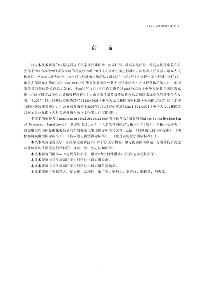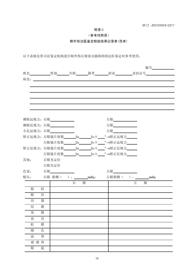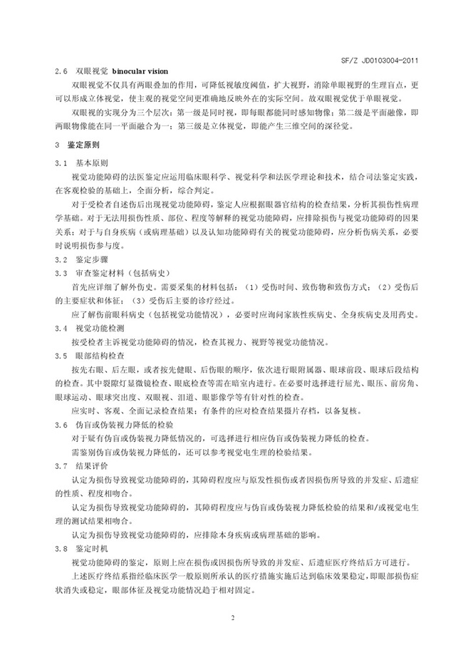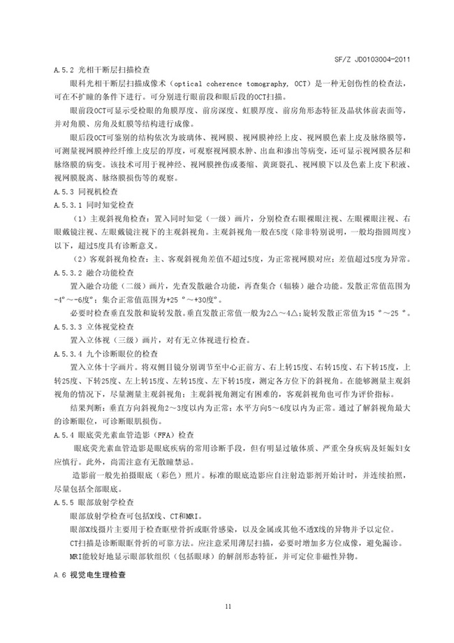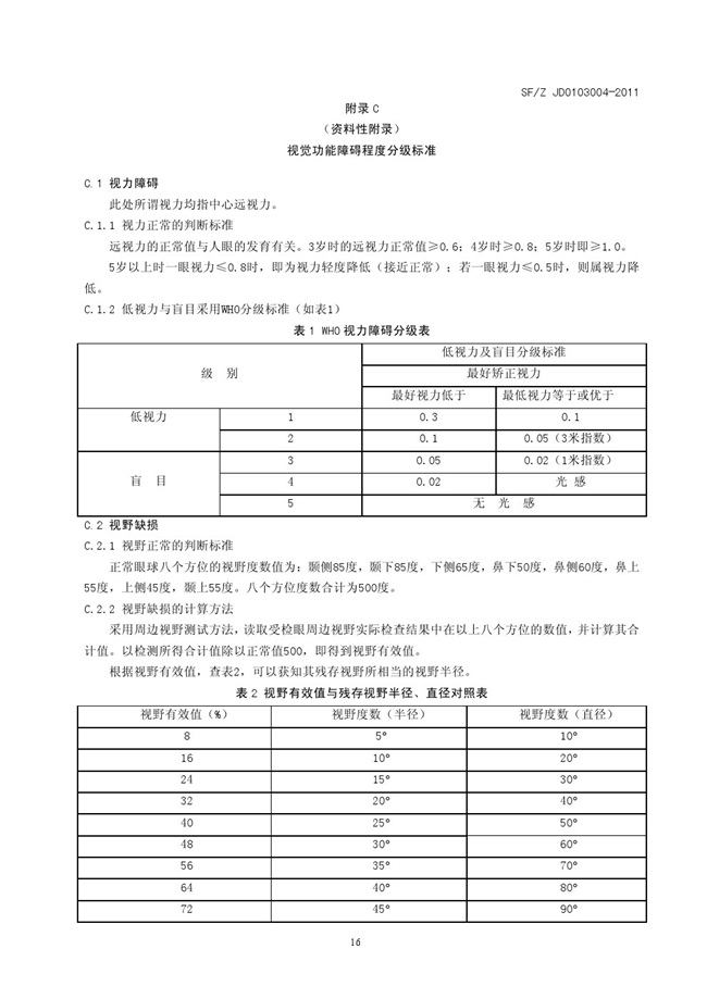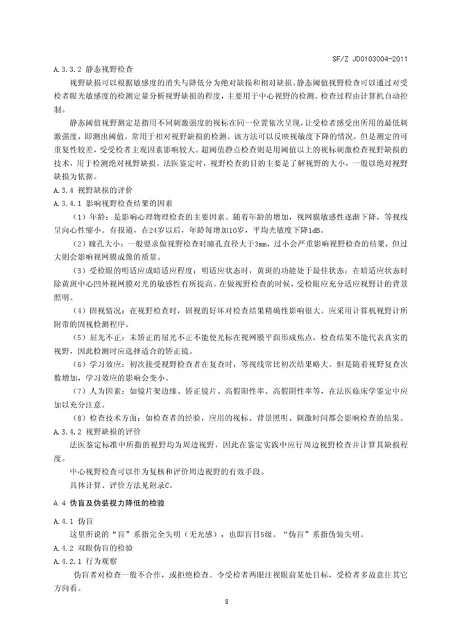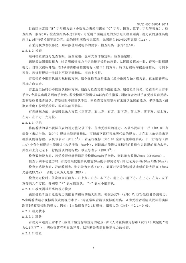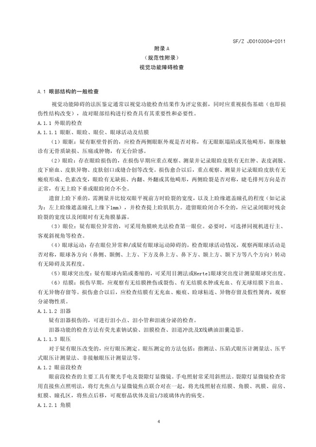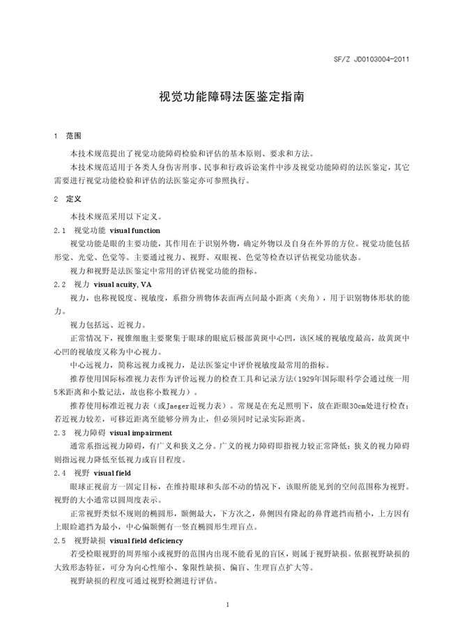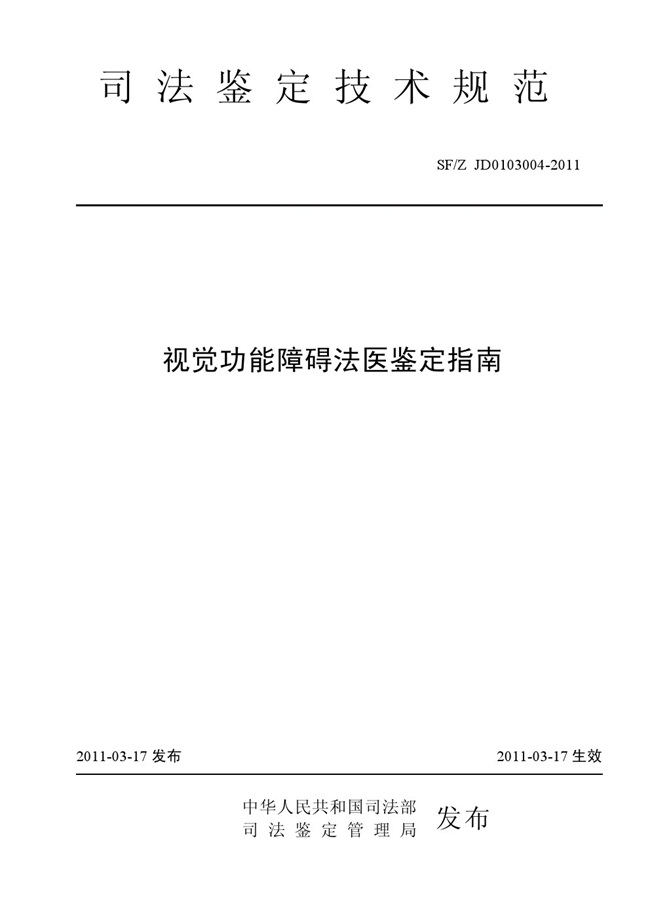 SFZ JD0203004-2011 视觉功能障碍法医鉴定指南